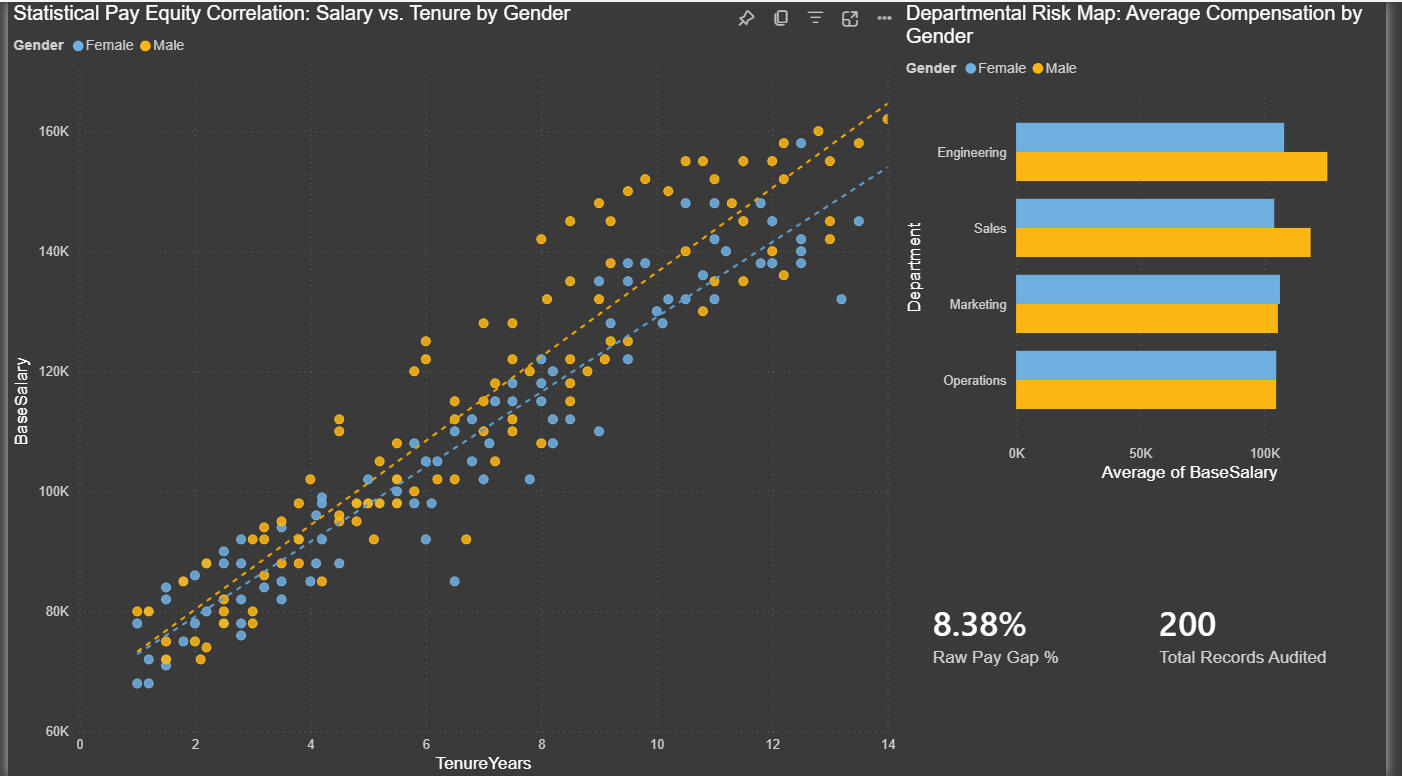 We deploy statistical regression models to isolate 'unexplained' disparities by controlling for tenure, performance, and location. This provides leadership with a Risk Command Center to remediate liabilities before they become legal risks.
